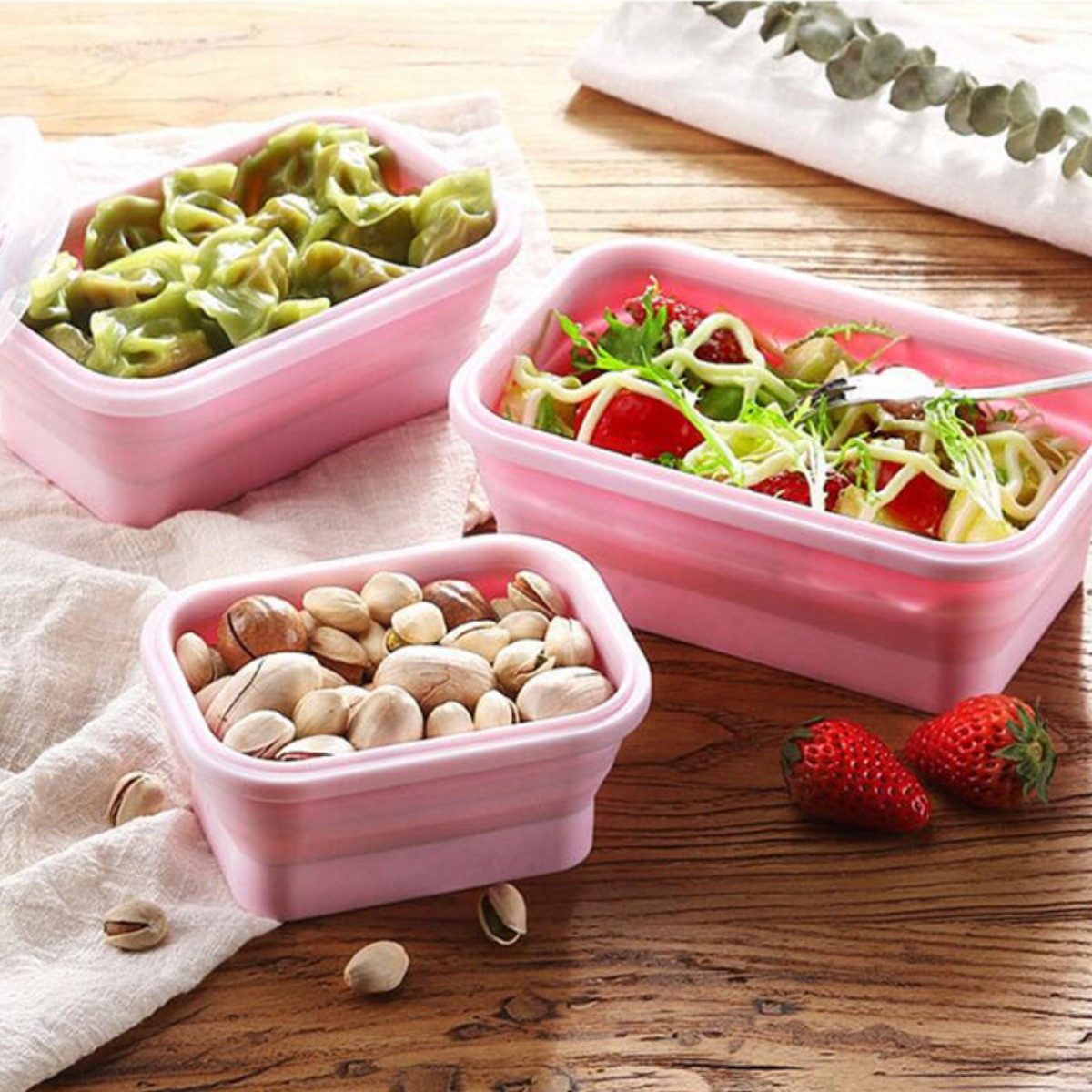 Característica: – Material de calidad alimentaria, saludable y seguro. – Fácil de limpiar, apto para lavavajillas. – Apto para microondas y congelador. – Plegable y hermético. – Libre de BPA