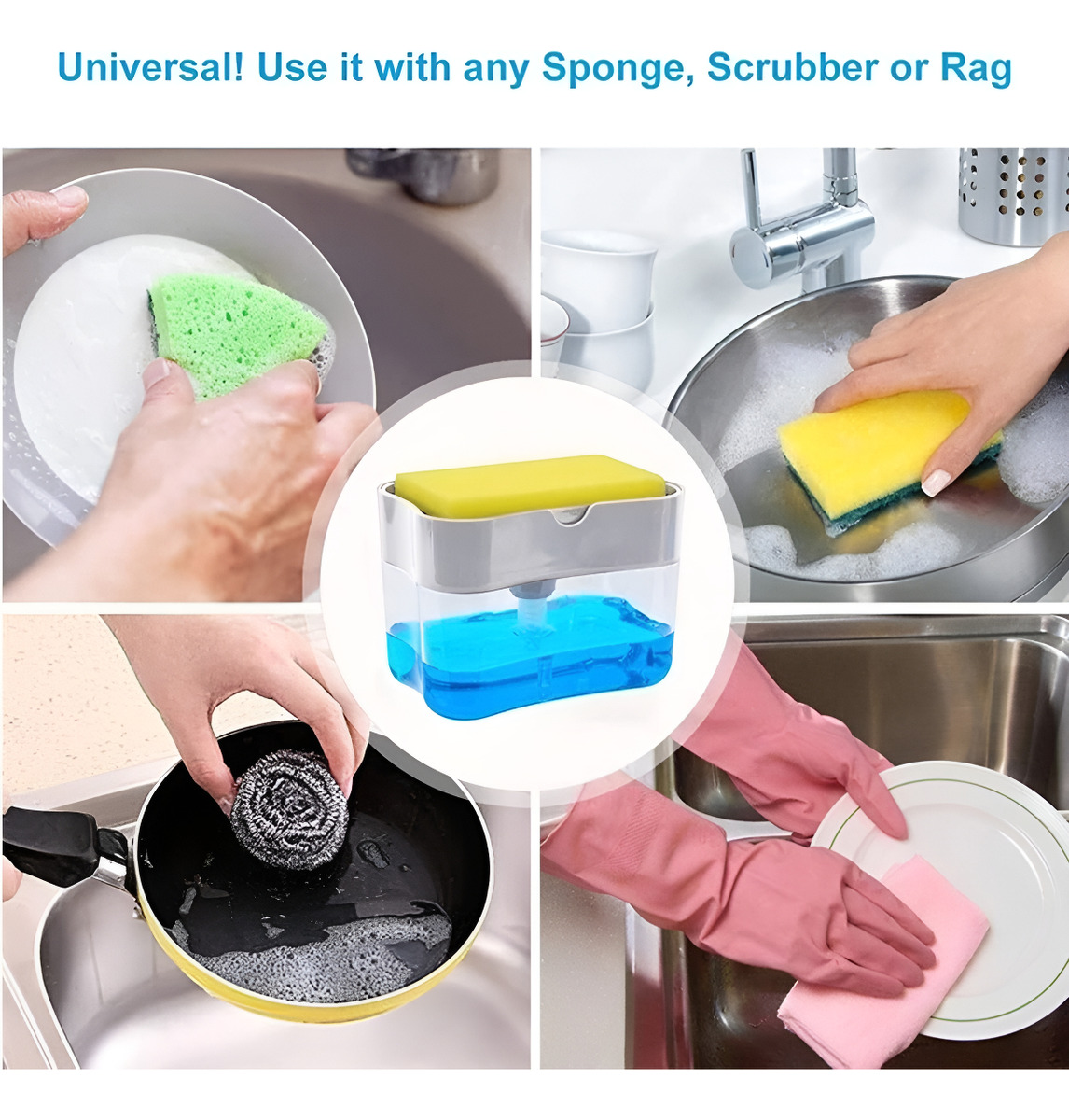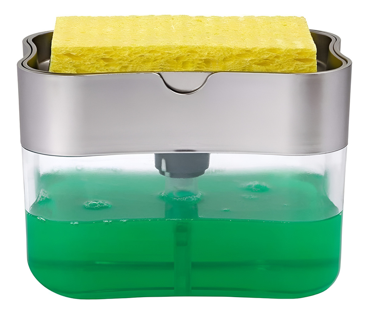 Hacé tu rutina de lavado mucho más simple con este práctico dispensador de jabón con esponja incluida. Solo presioná con la esponja sobre la bomba y obtené la dosis justa de detergente, evitando desperdicios y manteniendo tu cocina siempre ordenada.