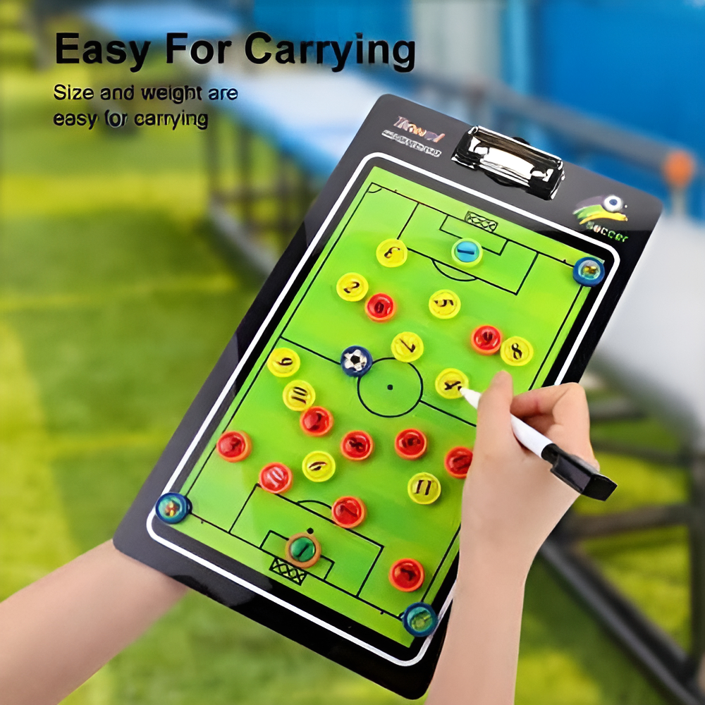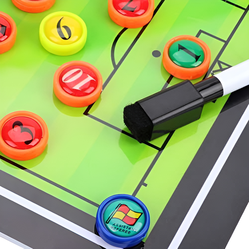 Planificá y explicá tus jugadas como un profesional con esta pizarra táctica magnética. Perfecta para entrenadores, equipos y amantes del deporte que buscan una herramienta clara, práctica y portátil para transmitir estrategias.