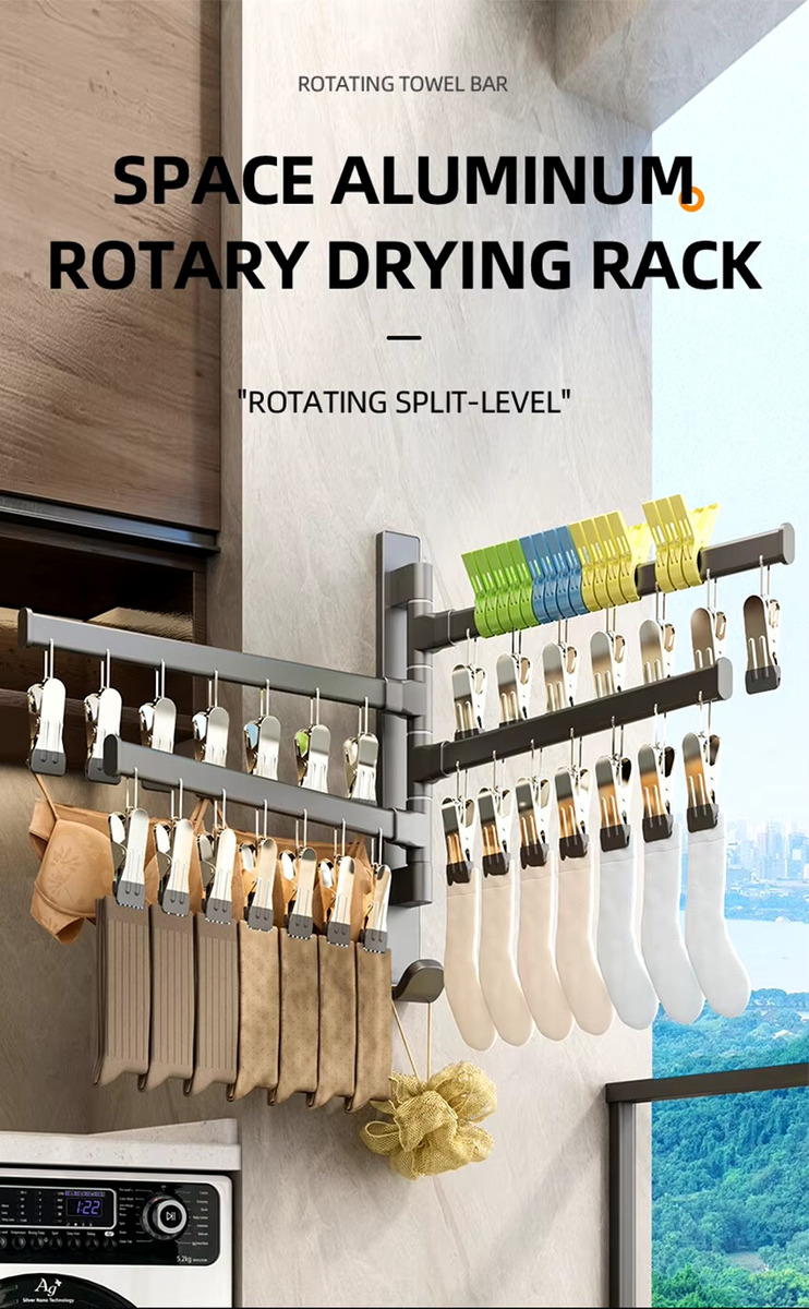 Este práctico tendedero para pared es ideal para secar ropa en espacios reducidos. Su diseño plegable permite guardarlo fácilmente cuando no está en uso, optimizando el espacio en tu hogar. Equipado con palillos para medias, garantiza que tus prendas se mantengan en su lugar mientras se secan.