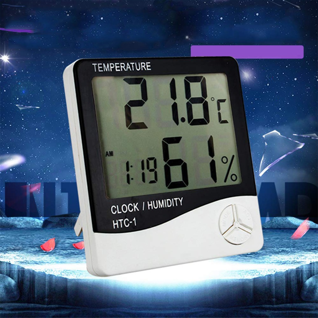 Termómetro de pared digital con medidor de Humedad, Reloj y Alarma.