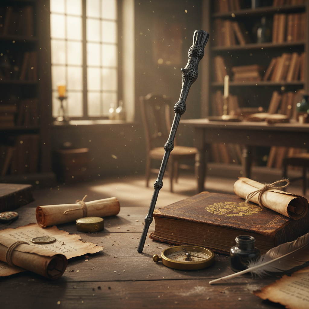 Dale un toque de magia a tus fotos, eventos y colecciones con esta varita temática inspirada en la saga Harry Potter. Incluye luz en la punta para recrear hechizos y escenas icónicas con un efecto visual impactante.