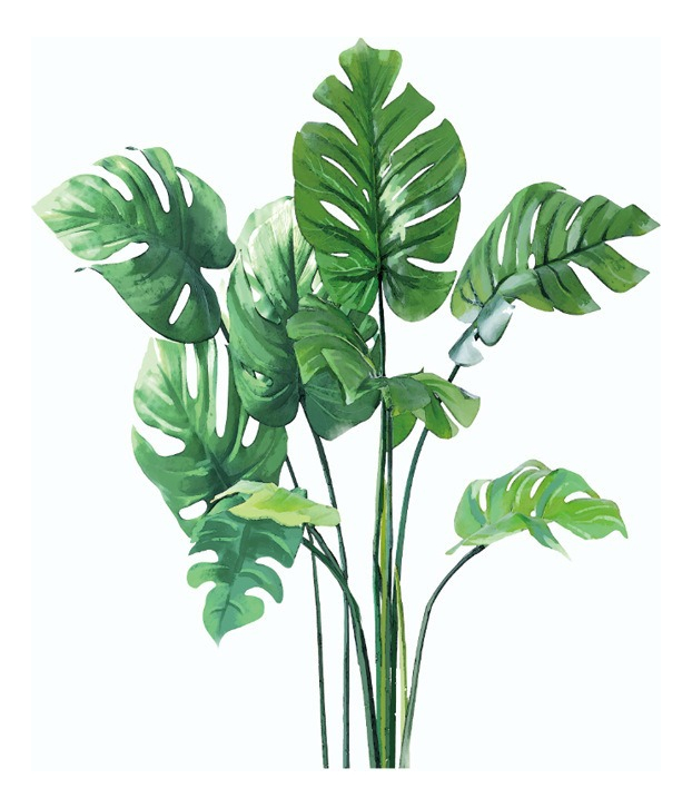 Vinilo decorativo de pared con diseño de hojas tropicales.