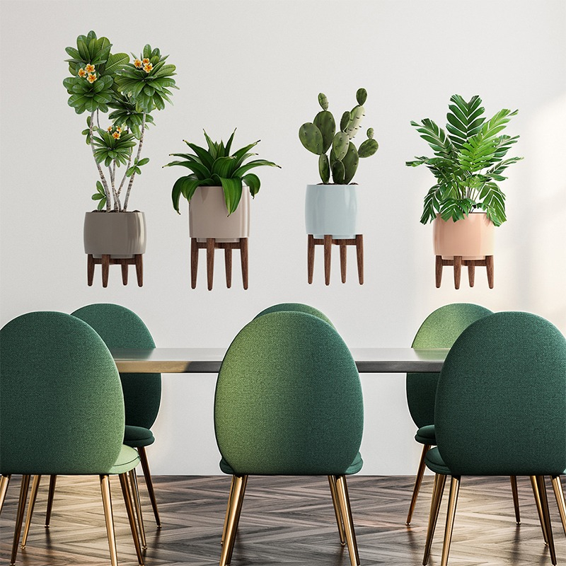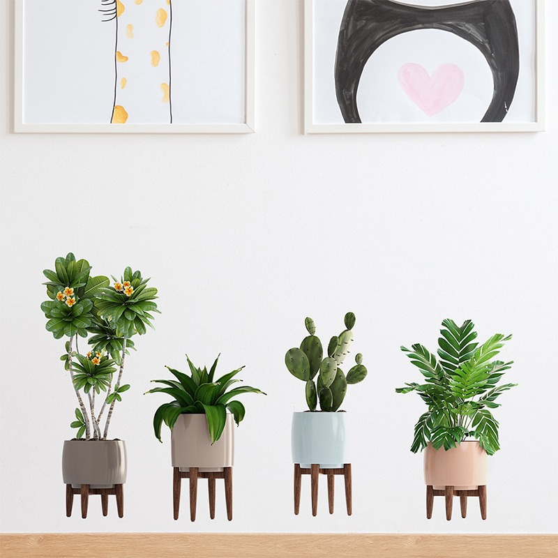 Vinilo decorativo de pared para habitación con diseño de planta en maceta.